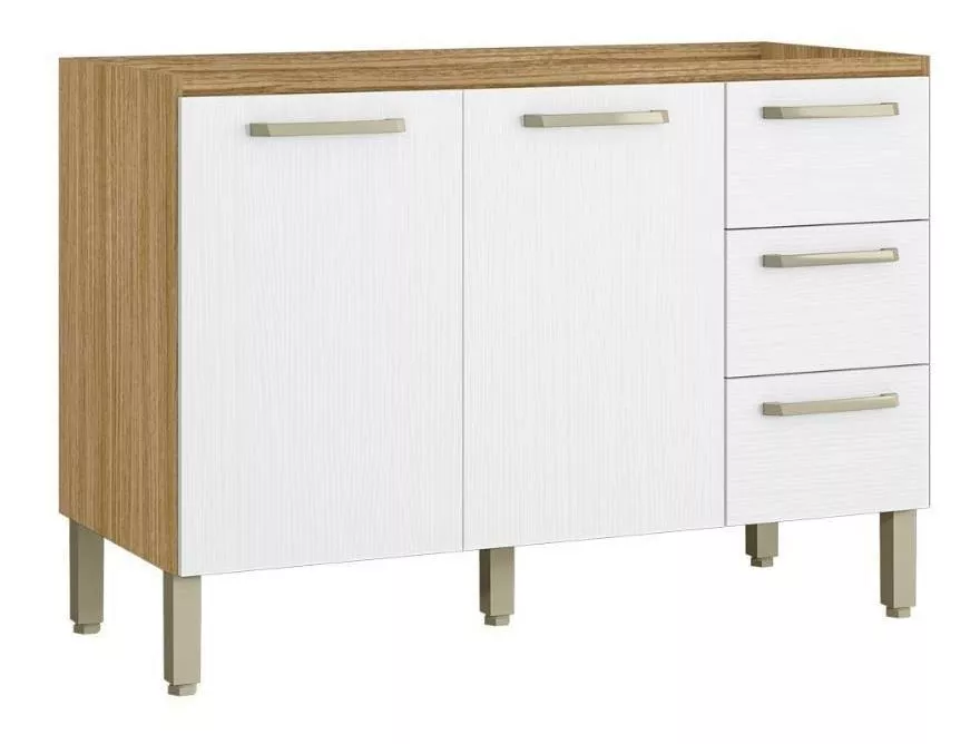Balcão Com 2 Portas e 3 Gavetas 1,20 ametista Cor Freijó Supremo Kits Paraná